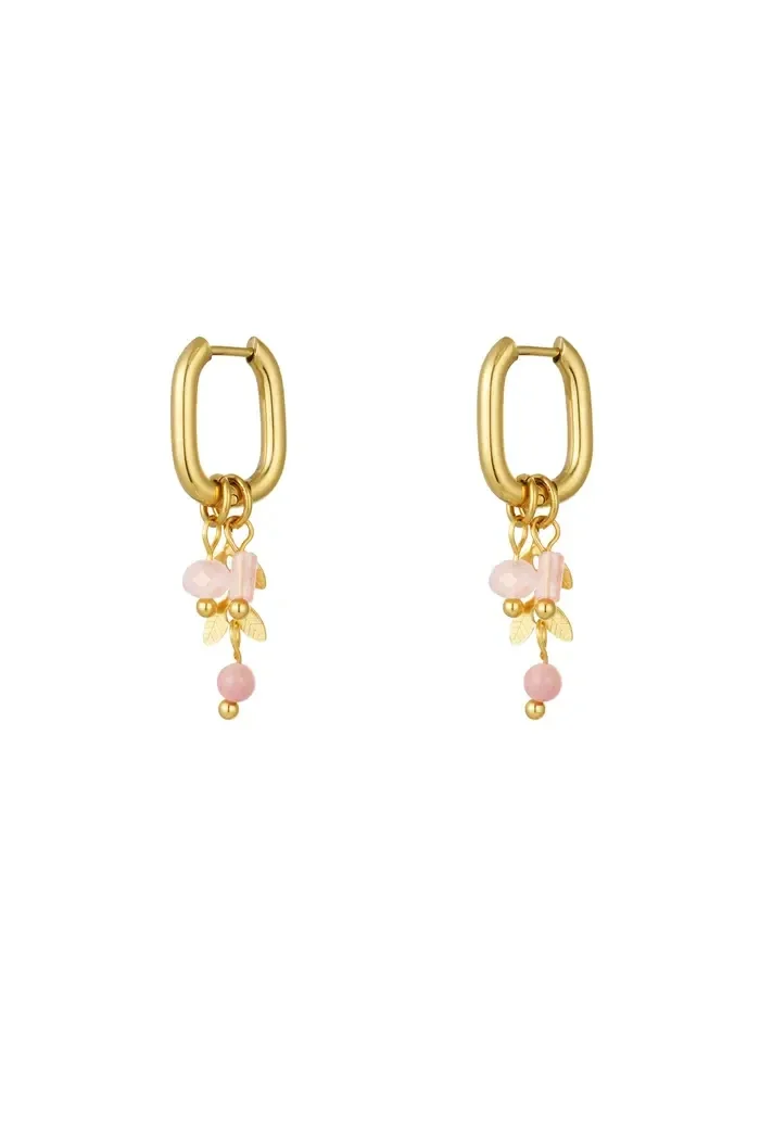 Earrings leaves with stones - gold/pink